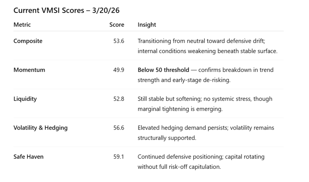 VMSI Sentiment: 53.6 — Neutral / Defensive Drift