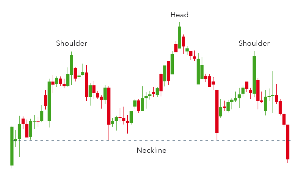 What to look for/ the first and third peak will be smaller than the second, but they will all fall back to the same level of support, otherwise known as the ‘neckline’. Once the third peak has fallen back to the level of support, it is likely that it will breakout into a bearish downtrend.