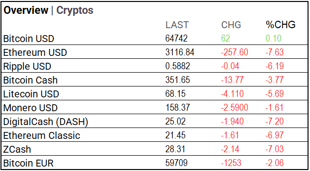 - Bitcoin rose slightly, while other major cryptocurrencies like Ethereum, Ripple, and Litecoin experienced declines.