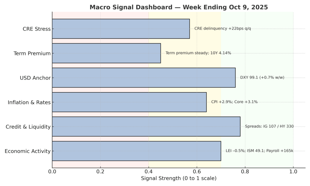 Allocator Note: Stay risk-on while MCSI > 0.70; monitor CRE as early trigger.
