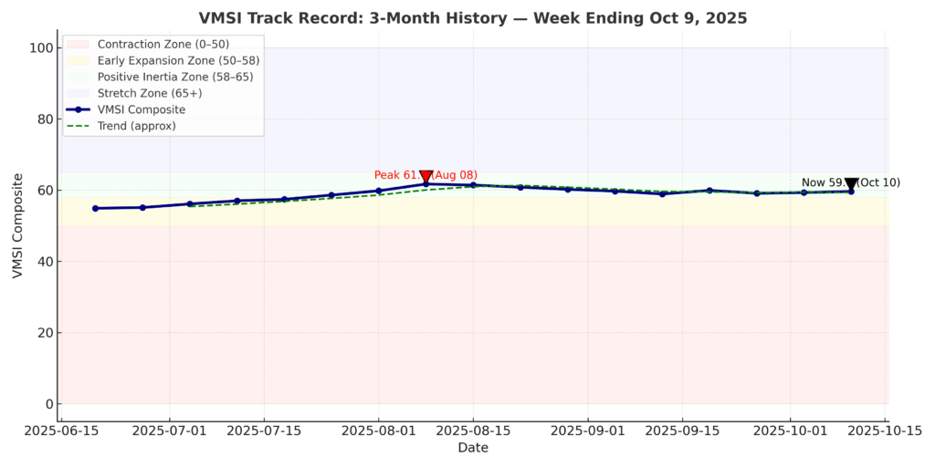 Positioning Note: Whether you’re managing institutional portfolios or private wealth, VMSI provides the discipline to stay constructive when surface sentiment falters. It gives decision-makers clarity on when to lean in — and when to defend.