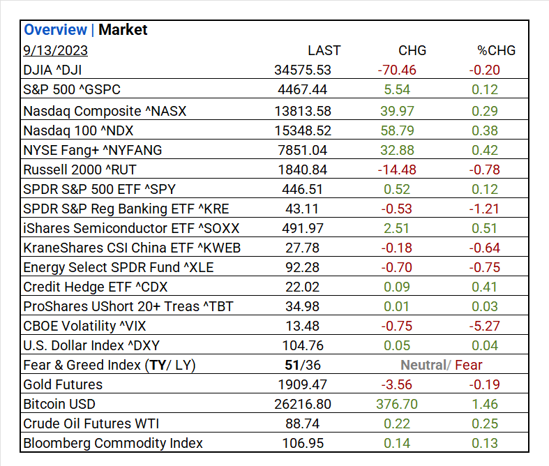 MARKETS TODAY – September 13th, 2023 (Vica Partners)
