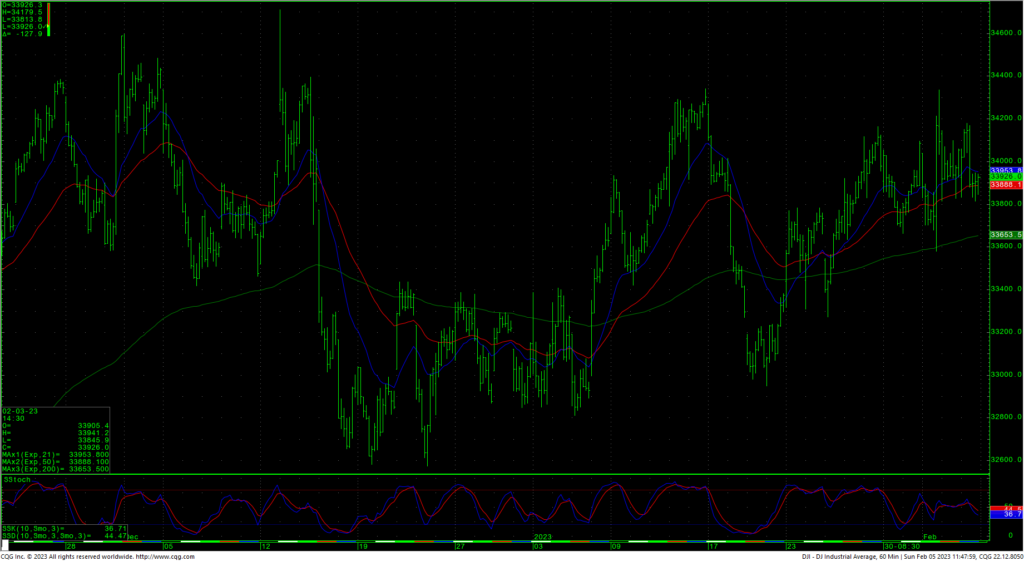 The DJIA traded a whipsaw week and closed down -0.15% as the blue chips once again lagged the S&P, Nasdaq and Russell…which closed up +1.62, +3.31 and +3.88 respectively. Sentiment remains slightly neutral while momentum indicators have turned toward ‘greed’ with the 52-week high/low reaching an extremely frothy +2.90 on last Friday’s close. The Dow remains stuck within a nine-week trading range with the weekly stochastics still in a slow downtrend from the December ‘22 highs. The S&P is on an upside breakout from the triangle pattern that had formed on the charts with prices trading to the highest levels seen since last August. The weekly stochastics have hooked higher with the rally. For an interesting take on the ‘self-fulfilling prophecy’ of a “Recession,” check out this article. And, the S&P index has registered the best January since 2019 (7.9%) and 1989 (7.1%)….as outlined in this interesting read.