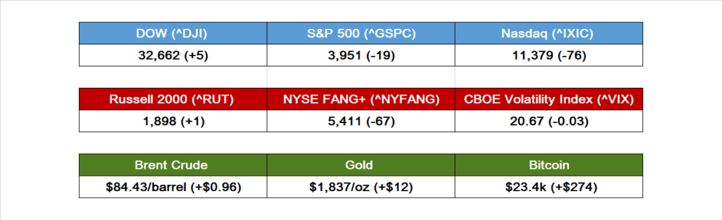 - Bitcoin: +1.19% to $23.4k